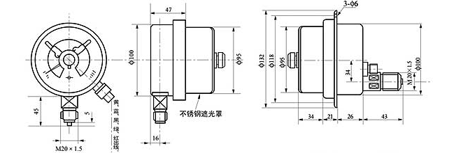 外形尺寸(与YXNC耐震电接点压力表外形尺寸相同)