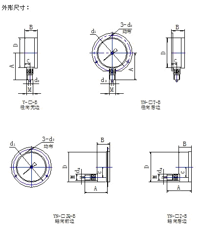 安装方式:径向、径向前边、轴向前边、轴向卡子 式径向后边。