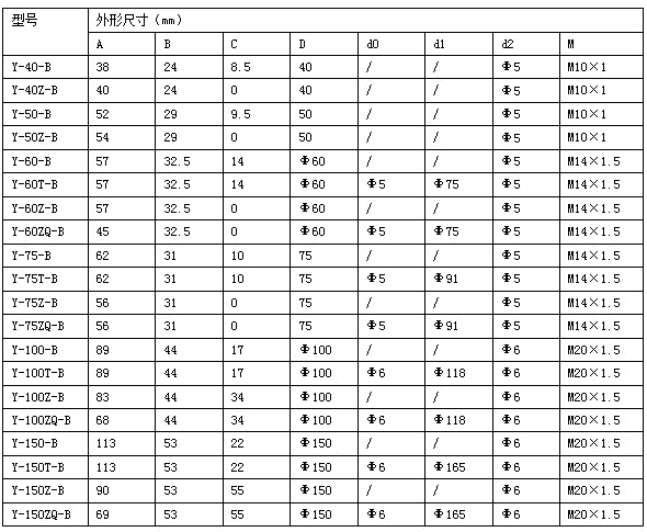 仪表外径:63 100 150
