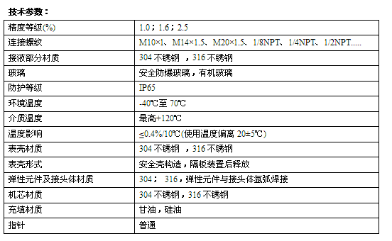 购买压力表提供压力表技术参数如下: